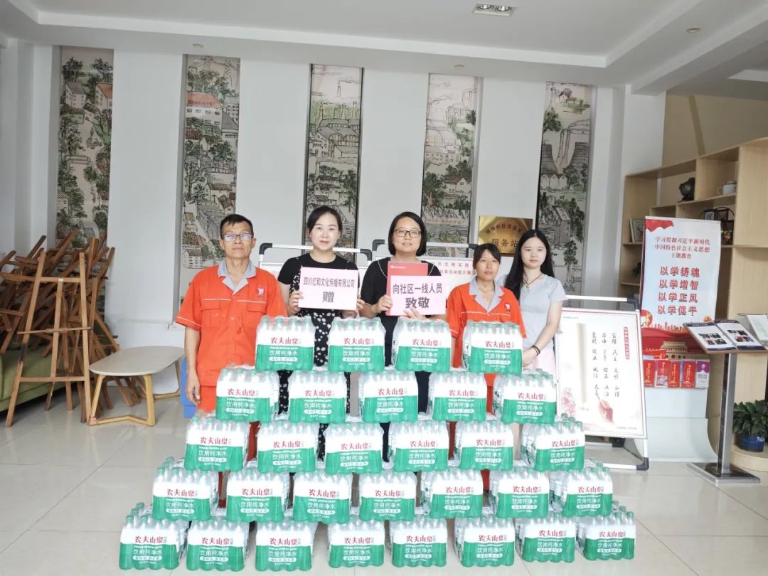 持續的高溫天氣給堅守崗位的職工(gōng)們帶來了不小(xiǎo)的“烤”驗。為(wèi)了做好防暑降溫工(gōng)作(zuò),緻敬每一位在高溫堅守的員工(gōng),四川億和文(wén)化傳播有(yǒu)限公(gōng)司特地開展“送清涼”活動,将清涼分(fēn)别送往成華區(qū)青龍街(jiē)道、府青路街(jiē)道、白蓮池街(jiē)道、跳蹬河街(jiē)道、保和街(jiē)道、雙水碾街(jiē)道,6個街(jiē)道,38個社區(qū)。